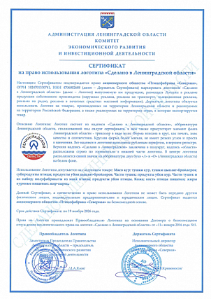 作为食品工业生产,«塞维尔那雅»家禽生产股份公司的首要任务之一是符合质量标准,安全性,符合俄罗斯的以及«危害分析重要管制點» (HACCP)与«国际标准化组织»(ISO)公认国际的标准。